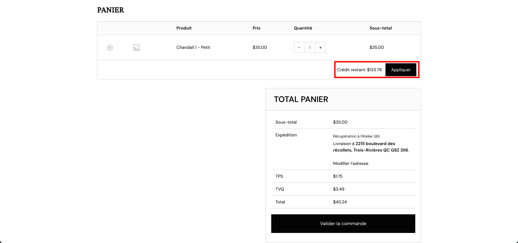• NOTE IMPORTANTE : Si vous ajoutez des articles à votre panier après avoir appliqué le crédit, il est essentiel de retirer le crédit et de le réappliquer une fois votre panier mis à jour.